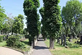 On y trouve environ 400 pierres tombales de personnes décédées depuis le XIXe siècle. Le cimetière a été vandalisé lors du pogrom de la Nuit de Cristal en 1938.