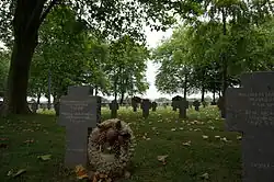 Le cimetière est créé pour recueillir les dépouilles des soldats allemand tombés lors de la Première Guerre mondiale. Les restes de 8 625 soldats allemands y reposent, essentiellement dans deux ossuaires[1]. Les 4 308 tombes individuelles sont matérialisées par des croix en pierre. 22 soldats n'ont pas été identifiés à ce jour. Sur les 4 322 corps inhumés dans les deux ossuaires, seuls 487 ont été identifiés. Parmi les soldats inhumés se trouvent des prisonniers de guerre allemands morts entre la fin 1914 et le début 1918[2].
