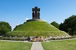 - ↑ Sur ce tertre s'élève une grande croix de Malte flanquée de deux statues latérales représentant symboliquement les parents des victimes.
