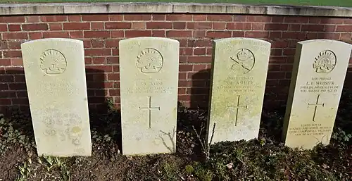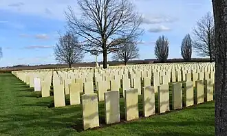 On relève parmi les morts, à la tombe 10 du carré V, rangée D, le caporal Herbert Ainsworth, du Tank Corps, tué le ; au carré 1, 1re rangée , à la tombe 12, deux soldats de la 3e escadrille de l’armée de l’air australienne, les lieutenants Edward Bice et John Chapman[2].