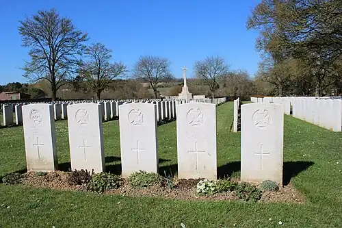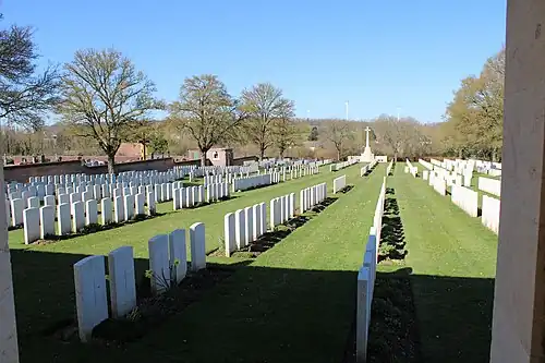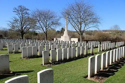 Le cimetière britannique est situé près du cimetière communal de Combles. Les dépouilles de 1 507 soldats y reposent parmi eux, 1 467 Britanniques, 22 Australiens, 11 Sud-Africains et 7 Canadiens[2].