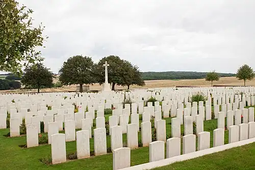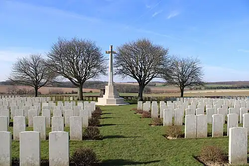Le cimetière militaire britannique fut créé en juillet 1916. On y inhuma des corps jusque novembre 1916. En août-septembre 1918, les inhumations reprirent. Après le 11 novembre 1918, des dépouilles de soldats enterrées sur le champ de bataille des environs furent transférées dans ce cimetière[1].