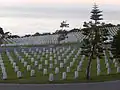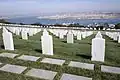 Le cimetière national de Fort Rosecrans avec le USS Midway en arrière-plan.