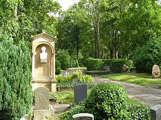 Karl Behlert (de) érige en 1924 un monument aux soldats tombés pendant la Première Guerre mondiale. Des bombes larguées par l'aviation américaine détruisent une partie du cimetière, le et réduisent en cendres la chapelle. On construit à sa place un mémorial pour les soldats soviétiques tombés pendant les combats du front de l'Est. La municipalité fait bâtir plus tard un mémorial pour les victimes des bombardements de la guerre, avec cinq tombes de travailleurs forcés polonais. Divers monuments sont placés aussi après la réunification allemande, en mémoire des soldats de la Wehrmacht (1993), des victimes pendant la fuite des anciens territoires allemands (1999), etc.