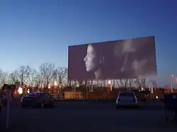 - ↑ 700 spectateurs étaient assis dans un auditorium et une quarantaine de voitures pouvaient prendre place avec une vue sur la scène et l'écran.