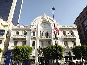 L'Association de sauvegarde de la médina de Tunis reconstruit son fronton détruit lors des travaux d'embellissement de l'avenue Habib-Bourguiba en 2002[1].