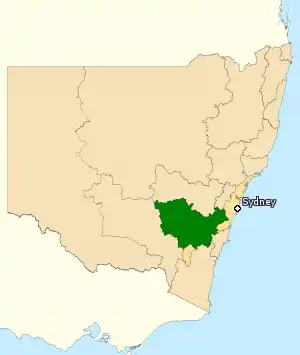 La circonscription de Hume (en vert) en Nouvelle-Galles du Sud.