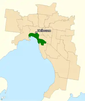 Elle couvre la zone portuaire de Melbourne et les quartiers adjacents à savoir Port Melbourne, South Melbourne, St Kilda, Elwood et Caulfield North.