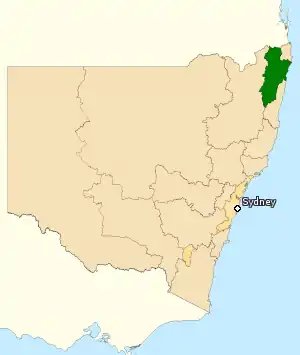 Elle est située au nord-est de l'État, jouxtant le Queensland et l'océan Pacifique et comprend les villes de Ballina, Lismore, Casino, Grafton, Tyringham, Bonalbo, Nimbin et Iluka. C'est un siège disputé entre droite et gauche.