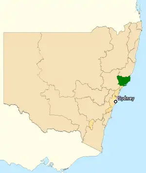 La circonscription de Paterson (en vert) au nord de Sydney en Nouvelle-Galles du Sud.