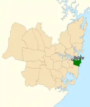 La circonscription de Wentworth (en vert) à Sydney en Nouvelle-Galles du Sud.
