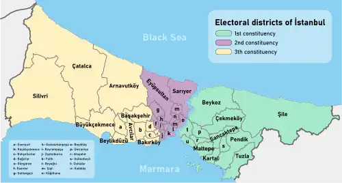Les circonscriptions électorales de la province d'Istanbul sont un découpage constitué de trois secteurs (seçim çevresi) constitué de districts (ilçe). Istanbul, Ankara, Izmir et Bursa sont les quatre seules provinces de Turquie à avoir un découpage interne pour les élections législatives en raison de leur taille. Dans tous les autres cas, les circonscriptions électorales se font à l'échelle des provinces.