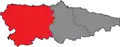| Orientale | Amieva, Cabrales, Cabranes, Cangas de Onís, Caravia, Colunga, Llanes, Nava, Onís, Parres, Peñamellera Alta, Peñamellera Baja, Piloña, Ponga, Ribadedeva, Ribadesella et Villaviciosa. |