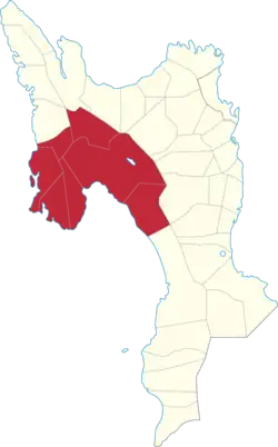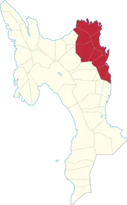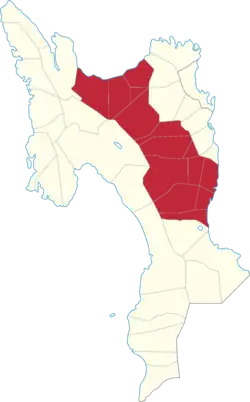 - Municipalités : Alangalang, Babatngon, Dulag, Palo, Tacloban, Tanauan, Tolosa, San Miguel
