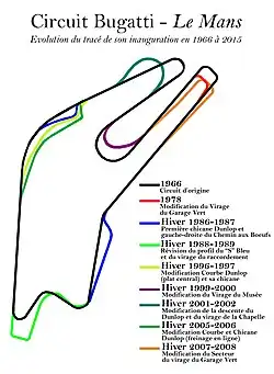 Évolution du tracé du Circuit Bugatti