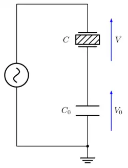 Le montage d'origine de Sawyer et Tower[6] était destiné à l'étude du sel de Rochelle, également appelé sel de Seignette, qui présentait alors les meilleures propriétés piézoélectriques connues. Ce montage ne diffère que peu du montage de principe évoqué ci-dessus. Des résistances sont ajoutées afin de réaliser des ponts diviseurs de tension. Le cycle d'hystérésis est visualisé à l'aide d'un tube de Braun (tube cathodique). La source de tension utilisée a une fréquence de 60 Hz pour une amplitude de 130 V, ce qui, ramené à l'épaisseur de leurs échantillons, correspond à un champ électrique de 2 600 V/mm.