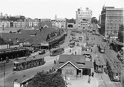Circular Quay est alors le terminus de la plupart des lignes de tramway électriques provenant des banlieues est. Le premier tramway à faire arrêt à Circular Quay, en 1861, était hippomobile et partait de la vieille gare de Sydney en suivant Pitt Street, pour assurer l'interconnexion avec les lignes de ferries[6]. Les trams provenaient de la gare, descendaient Castlereagh Street jusqu'à Circular Quay, puis remontaient vers la gare en passant par Pitt Street, effectuant ainsi une large boucle dans le sens inverse des aiguilles d'une montre. Durant plusieurs années, le service atteignit jusqu'à vingt-sept départs par jour[7],[8].