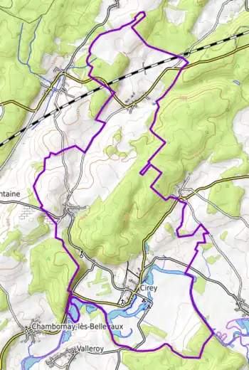 - ↑ « Orthodromie entre Cirey et Rioz », sur fr.distance.to (consulté le ).