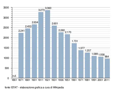 - ↑ ISTAT - Unità amministrative, variazioni territoriali e di nome dal 1861 al 2000 (Unité administrative, évolutions territoriales et des noms de 1861 à 2000) - (ISBN 88-458-0574-3)