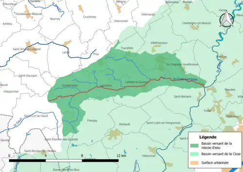 La Cisse Landaise traverse 6 communes, soit de l'amont vers l'aval : Saint-Cyr-du-Gault (41), Gombergean (41), Lancôme (41), Landes-le-Gaulois (41), La Chapelle-Vendômoise (41), Saint-Bohaire (41).