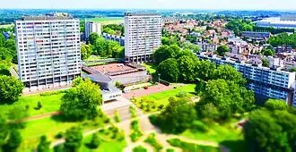 Le lotissement, comportant 22 bâtiments[réf. nécessaire], un centre culturel, une bibliothèque, un supermarché, des terrains de sport et de jeux et beaucoup d'espaces verts est une idée du député Fernand Brunfaut conformément à la loi Brunfaut de 1949 et avec les ressources du Fonds national du logement. Il devait être achevé pour l'exposition universelle de Bruxelles, l'Expo 58, mais ce délai n'a pas été respecté, comptant un retard de quelque dix ans. Finalement, le quartier n'est pas totalement aménagé selon les plans, avec des restrictions principalement sur les parties communes et les abords. Achevé, le quartier est comme une ville dans la ville qui abrite environ quatre mille habitants répartis dans un parc d'une superficie de 17 ha.