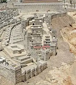 La cité de Jébus, fondée 2 000 ans auparavant par les Jébuséens, fut prise selon la Bible par le roi David vers l'an -1004 av J.C.. Devenue la Cité de David, celle-ci était située au sud du mont du Temple, sur ce qui était alors appelé le mont Sion, probablement la colline de l'Ophel, et était entourée de collines tout autour d'elle (d'après le livre des Psaumes). L'emplacement de la source de Gihon est également localisée en ce lieu. C'est près de cet endroit que l'on retrouve la structure qu'Eilat Mazar identifie comme le palais de David. Cependant cette identification est contestée.