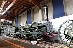 | Bourbonnais 030 no 1423 Compagnie du P.L.M. | Cail, 1854 | 00,00 m, 00 t (00,0 t en ordre de marche), vitesse maximum : 000 km/h (000 ch). Timbre chaudière : 10 kg/cm². Capacité de la soute à charbon (Tender) : 00 t. Capacité de la soute à eau (Tender) : 0 000 L (00 m3). Distribution : Intérieur. | Cité du Train (Mulhouse) | ![]() |