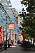 L’ensemble a été coordonné par Renzo Piano, autour d’une rue piétonne intérieure semi-couverte.