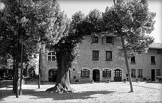 La place de la Halle, nommée également « place du tilleul », constitue le cœur géographique[12] du Vieux Pérouges.