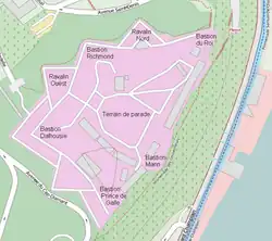 - ↑ « Ramparts & Fortifications of Quebec City », sur Urban Guide Quebec (consulté le ).