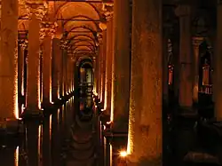 La capitale de l'Empire byzantin possédait de très nombreuses citernes souterraines, dont les plus fameuses, la Citerne Basilique (Yerebatan Sarayı) et la Citerne de Philoxenos, sont encore visitables. Elles prenaient la forme de salles hypogées dont le plafond était soutenu par des centaines de colonnes.