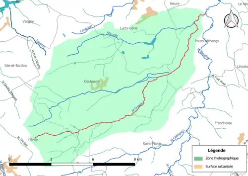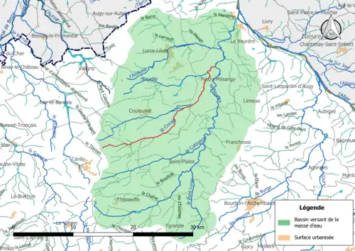 | Sources : SANDRE:« Fiche cours d'eau (K3614000) », Géoportail | |