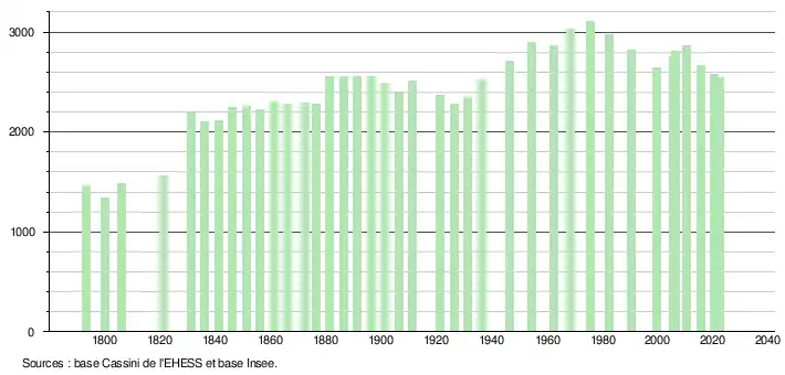 - ↑ Population municipale de référence en vigueur au 1er janvier 2025, millésimée 2022, définie dans les limites territoriales en vigueur au 1er janvier 2024, date de référence statistique : 1er janvier 2022.