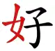hǎo « (être) bon » → « femme » + 子 « enfant » (cliché de la femme tenant son enfant dans les bras comme symbole de la bonté)