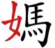 Le caractère 媽 , qui signifie en chinois « mère », est formée par la clé (女), qui signifie « femme » et est située à gauche.