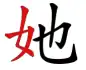 « elle » sur le modèle de 他 « il » par remplacement du radical 亻 « homme » pour indiquer le genre.