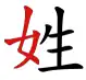 xìng « noms de famille » → « femme » + 生 shēng « naissance » (origine dans une ancienne coutume matrilinéaire ou dans l'habitude de désigner les épouses par « femme » + nom de clan dans les inscriptions votives Zhou)