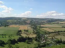 L'occupation des sols de la commune, telle qu'elle ressort de la base de données européenne d'occupation biophysique des sols Corine Land Cover (CLC), est marquée par l'importance des territoires agricoles (81,3 % en 2018), une proportion sensiblement équivalente à celle de 1990 (81,6 %). La répartition détaillée en 2018 est la suivante : prairies (44,7 %), zones agricoles hétérogènes (24,4 %), forêts (16,2 %), terres arables (12,1 %), zones urbanisées (2,6 %)[31]. L'évolution de l'occupation des sols de la commune et de ses infrastructures peut être observée sur les différentes représentations cartographiques du territoire : la carte de Cassini (XVIIIe siècle), la carte d'état-major (1820-1866) et les cartes ou photos aériennes de l'IGN pour la période actuelle (1950 à aujourd'hui)[Carte 2].