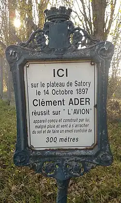 - ↑ « Stèle du premier vol de Clément Ader », sur AeroStèles (consulté le ).