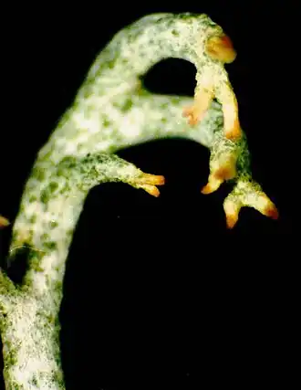 Enfin, la troisième période, celle du dépérissement, dure environ 10 à 20 ans et consiste en la décomposition des entre-nœuds restants et des podétia[2].