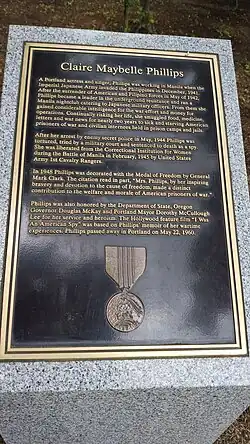 Sur recommandation du général Douglas MacArthur, elle reçoit la Médaille de la Liberté en 1951[11]. Son activité d'espionne est saluée par une plaque commémorative située au Mémorial de la Seconde Guerre mondiale de l'Oregon (en).