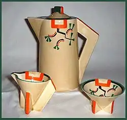 À partir de 1929, les formes sont influencées par une tendance plus moderne, souvent angulaire et géométrique, et certaines se rapproche de ce que l'on appellera plus tard le style Art Deco. Des motifs abstraits et cubistes apparaissent dès la série Ravel en 1929 (par exemple la forme conique de la falaise). Le dessin comprend un motif abstrait de feuilles et de fleurs nommé d'après le compositeur Maurice Ravel repris sur une cafetière conique, un sucrier et un pot à lait avec quatre pieds triangulaire. C'est une autre des idées de formes appartenant au concept « Bizarre » de Cliff qui sont devenues populaires auprès de ses clients dès 1930[16].