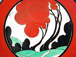 Les motifs de Cliff sont très stylisés et interprétés dans des couleurs vives, comme le motif Honolulu de 1933. Les arbres sont émaillés en rouge (corail) orange et jaune. Cliff produit une variation de couleur à ce sujet en changeant simplement les arbres en nuances de bleu et de rose, et cela s'appellet alors Rudyard après un spot de beauté local du Staffordshire[28].