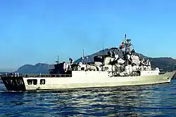 | Armement | 1 canon de 127 mm 3 systèmes Oerlikon Contraves Sea Zenith (en) de 25 mm 2 mitrailleuses de 12,7 mm 2x3 tubes lance-torpilles de 324 mm 16 Mark 41 Vertical Launching System :