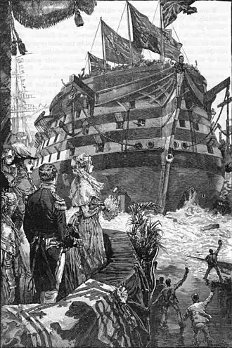 | HMS Neptune (en) | chantier naval de Plymouth | vendu en 1875 | ![]() | ||
