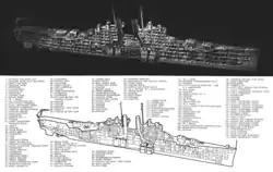 | Blindage | Ceinture : 37-127 mm Traverses 127 mm PBS 76 mm PBI 50 mm. Tourelles 76-127 mm Barbettes 127 mm Blockhaus 164 mm |