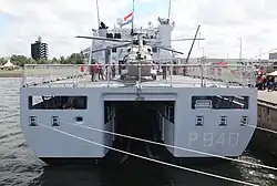 - OTO MELARA 76 mm[7] Super Rapid d'un cadence maximale de 120 coups par minute et d'une portée de 16 km : il s’agit d’une arme adéquate pour lutter contre les contrebandiers et arrêter de petites embarcations transportant de la drogue, notamment dans les Caraïbes où la Marine Néerlandaise est particulièrement active.