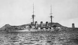 | Armement | (2X2) x 305 mm (cal. 45 Elswick 1904) 8 x 203 mm (cal. 45 Elswick 1904) 14 x 120 mm (cal.45 Armstrong) 4 x 80 mm 3 tubes lance-torpilles (457 mm) |
