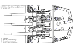 | Armement | 9 canons de 150 mm (3 x 3) 2 canons AA de 88 mm (remplacés par 4 de 88 mm SK C/32) 8 canons de 37 mm 8 canons 20 mm 12 tubes lance-torpilles de 500 mm (4x3) 120 mines |