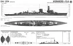 | Nürnberg | Deutsche Werke, Kiel | 4 novembre 1933 | 6 décembre 1934 | 2 novembre 1935 | Transféré à la Marine soviétique, puis renommé Admiral Makarov le 5 novembre 1945. |